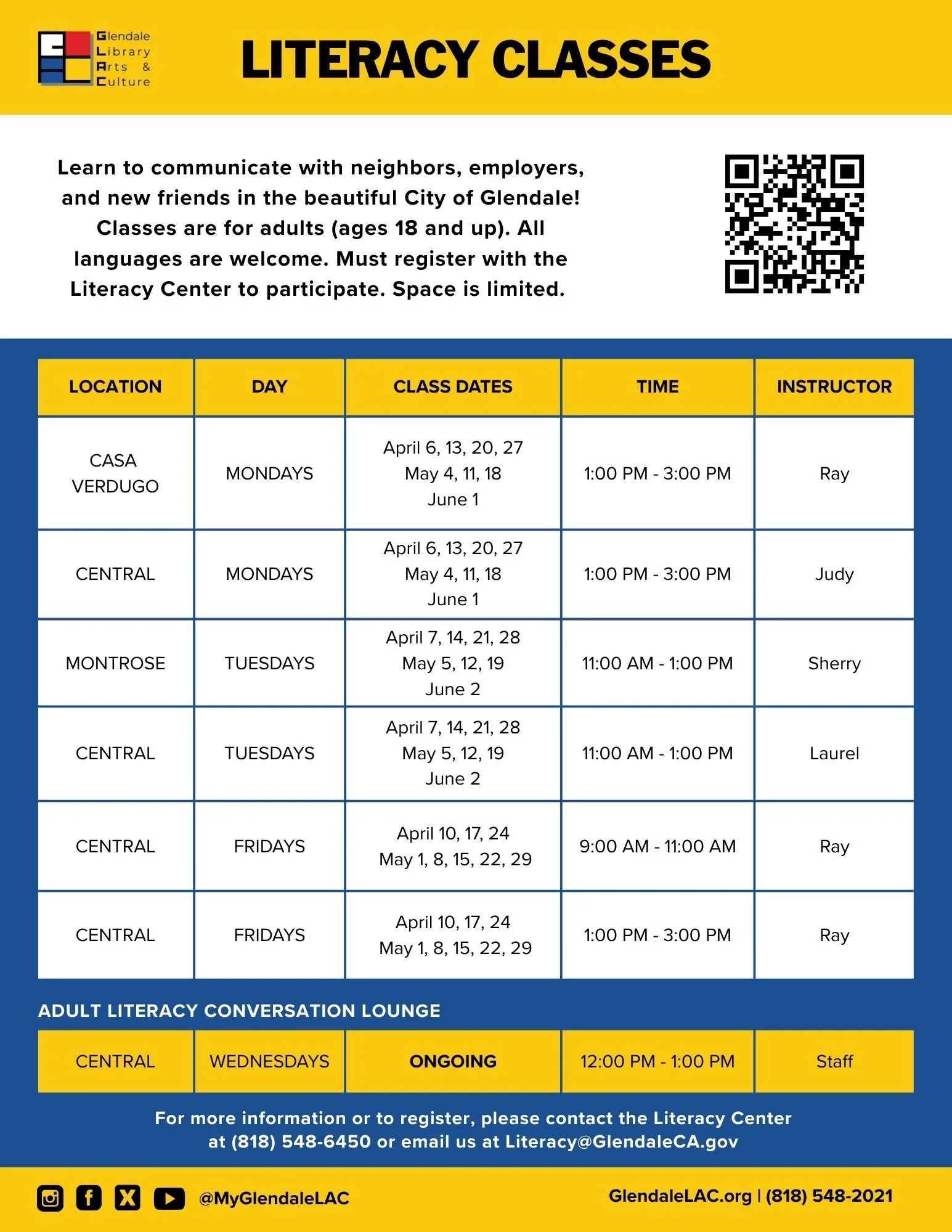 For more information, please contact us at (818) 548-6450 or literacy@glendaleca.gov